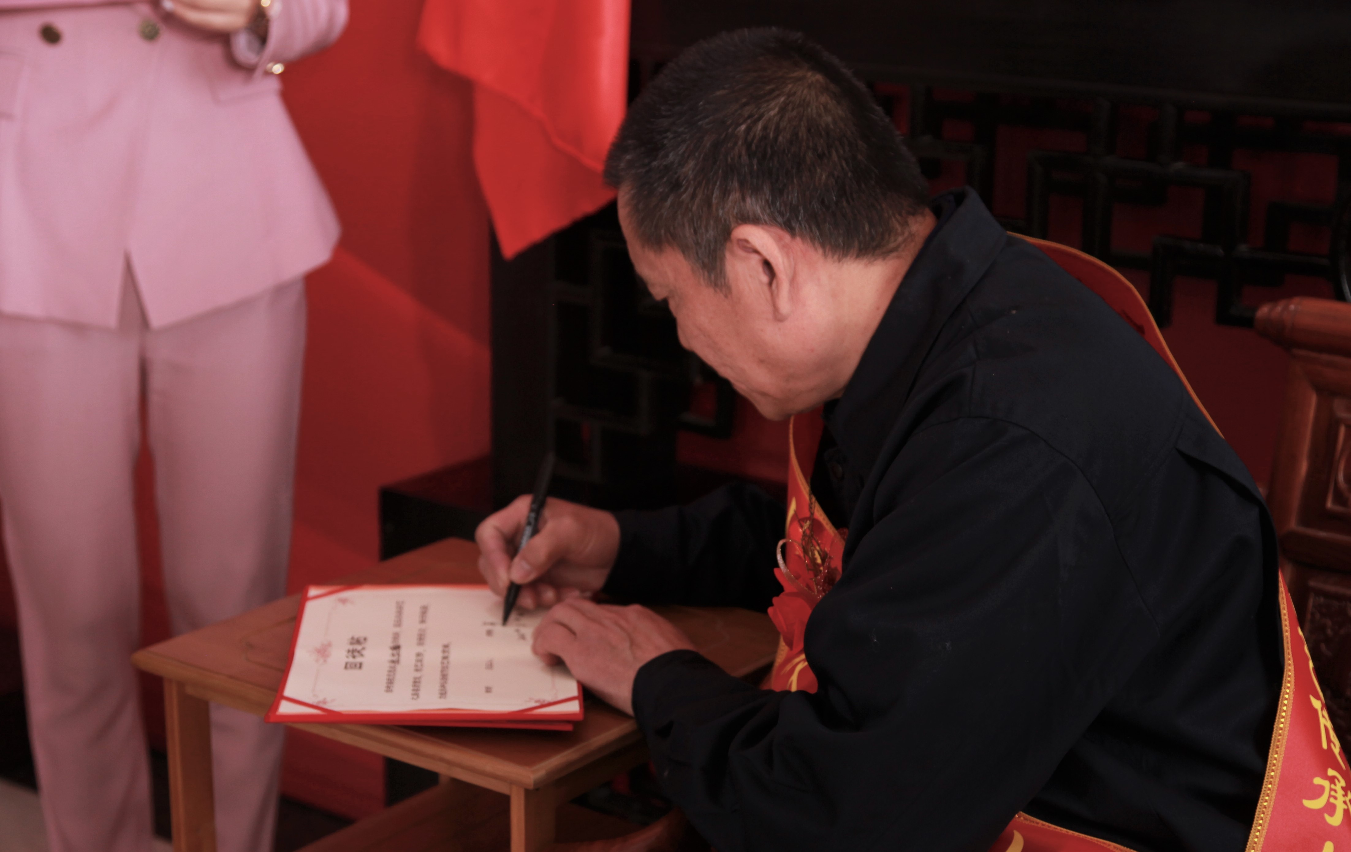 上午10點整,配料、墨汁制作、印泥墨塊制作三科第三代傳承人端坐于一得閣創(chuàng)始人、墨汁發(fā)明人謝崧岱先生親手書寫的一得閣牌匾前方,拜師儀式正式開始。經(jīng)過遞交拜師貼、行禮、師傅回帖、見證律師簽字、宣誓、簽訂保密書、徒弟代表發(fā)言等一系列傳統(tǒng)拜師環(huán)節(jié)后,10名年輕人的身份由學徒變?yōu)榧妓噦鞒械茏印N磥?,在師傅們(第三代傳承人)的教學指導(dǎo)和重點培養(yǎng)下,他們將深入研習一得閣各科獨門技藝,成為一得閣傳統(tǒng)技藝的傳承者和未來將品牌及技藝發(fā)揚光大的開拓者。