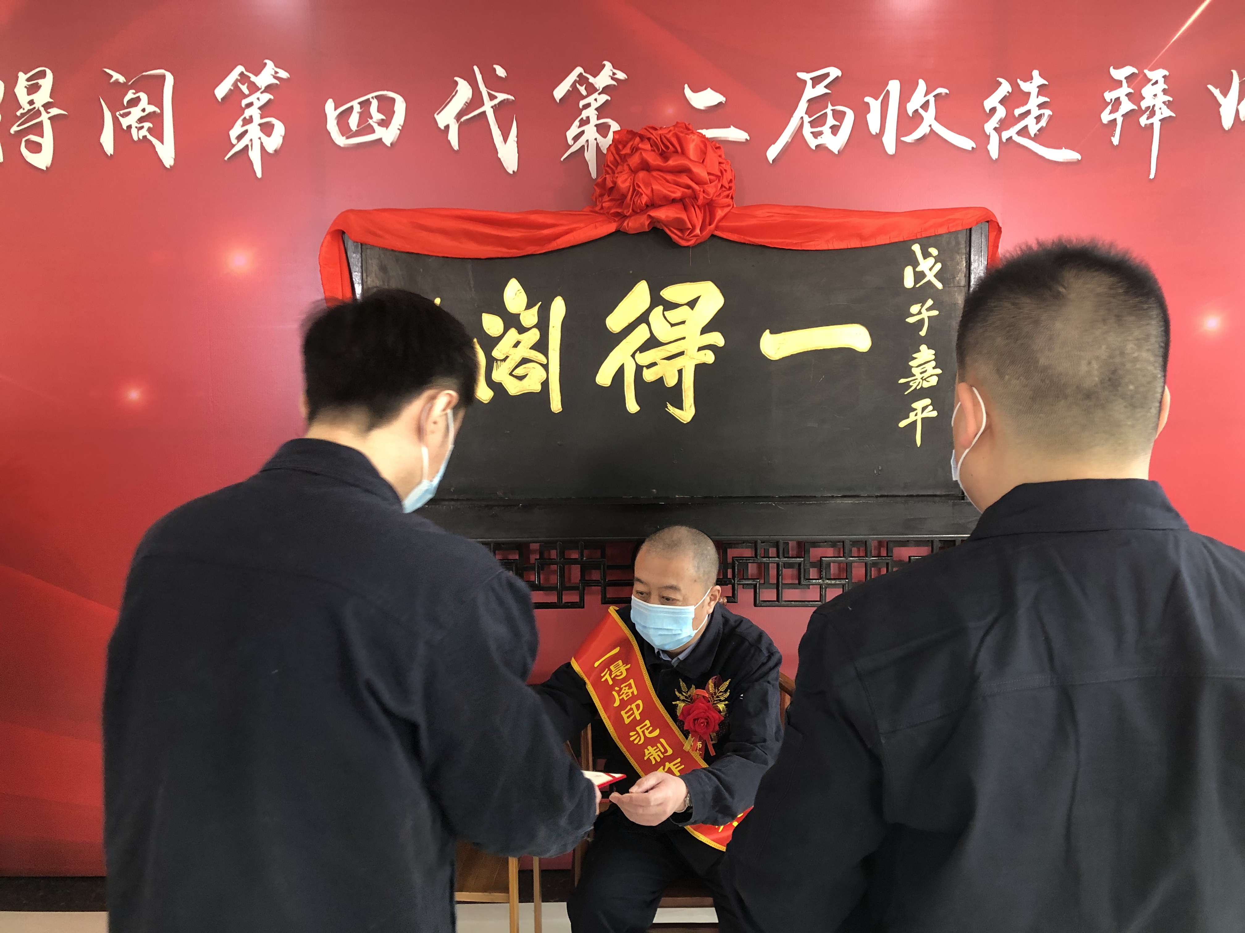 辛丑年二月初二,"龍?zhí)ь^"。中華老字號一得閣第四代第二屆傳承人拜師大會在一得閣長陽工廠成功舉辦。經(jīng)歷層層篩選、長期考察,一得閣學徒中的10名佼佼者正式拜入師門,成為一得閣第四代傳承人。到場觀禮見證的嘉賓有,中國文房四寶協(xié)會副會長、秘書長米軍先生,中國商業(yè)聯(lián)合會中華老字號工作委員會秘書長張健女士,北京老字號協(xié)會副會長兼秘書長孫月婷女士,北京市西城區(qū)委宣傳部副部長徐曉輝先生,中國商業(yè)聯(lián)合會中華老字號工作委員會企業(yè)服務(wù)項目主任畢殿輝先生、綜合服務(wù)項目主任劉普洋女士,中央電視臺少兒書畫大會總導(dǎo)演、《百年傳承》欄目出品人張航先生,央視少兒書畫大會秘書長王燕女士,北京一得閣墨業(yè)有限責任公司總經(jīng)理馬靜榮先生,副總經(jīng)理任香茹女士,副總經(jīng)理白冰先生等。