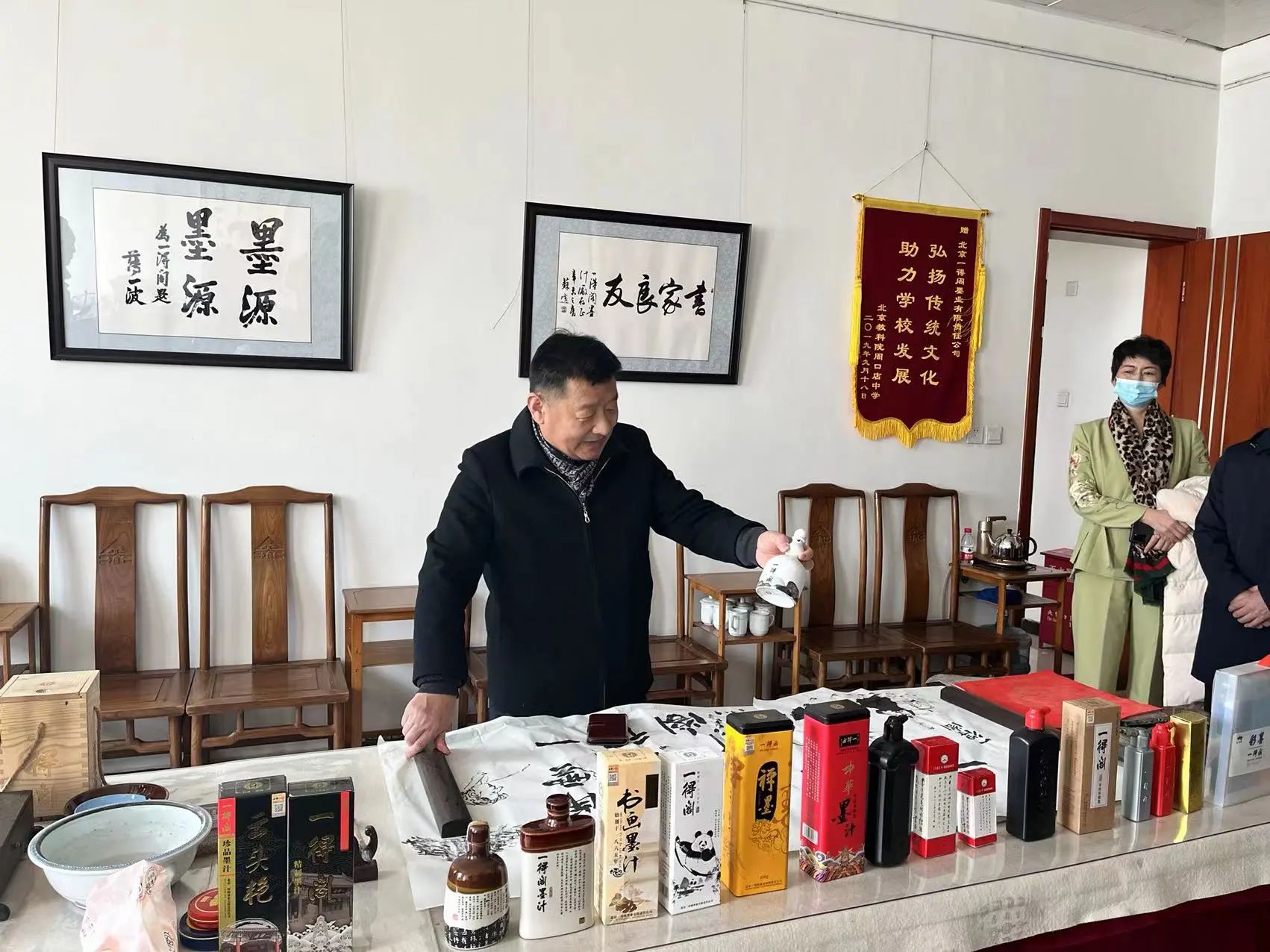 掛牌儀式簡(jiǎn)短而隆重,值得一提的是,葫蘆垡中心小學(xué)四年級(jí)學(xué)生當(dāng)日來到一得閣開展主題為“非遺技藝探秘”研學(xué)活動(dòng),恰成一得閣多年來開展研學(xué)活動(dòng)的縮影。在一得閣傳承人的組織講解下,現(xiàn)場(chǎng)氣氛熱烈歡快,同學(xué)們積極提問,互動(dòng)中了解更多的制墨文化和用墨知識(shí)。帶隊(duì)的張老師感慨的說,“研學(xué)活動(dòng)太棒了,校企結(jié)合,內(nèi)容豐富,讓孩子們?cè)诳鞓分懈惺芎材珚W秘,通過這一過程,孩子們會(huì)更加熱愛傳統(tǒng)文化。