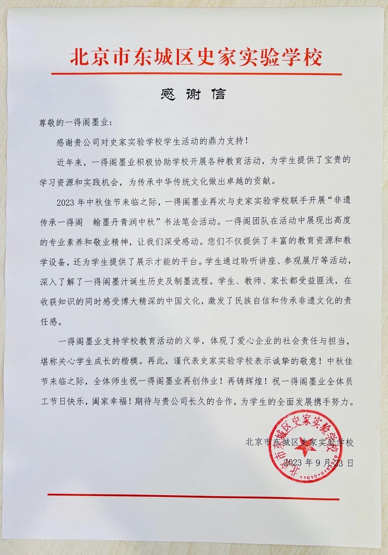 2023年9月23日上午,在傳統(tǒng)中秋佳節(jié)來臨之際,一得閣攜手史家實驗學校翰博書畫院的師生、家長齊聚琉璃廠一得閣藝術中心,隆重舉辦“非遺傳承一得閣,翰墨丹青潤中秋”筆會活動。