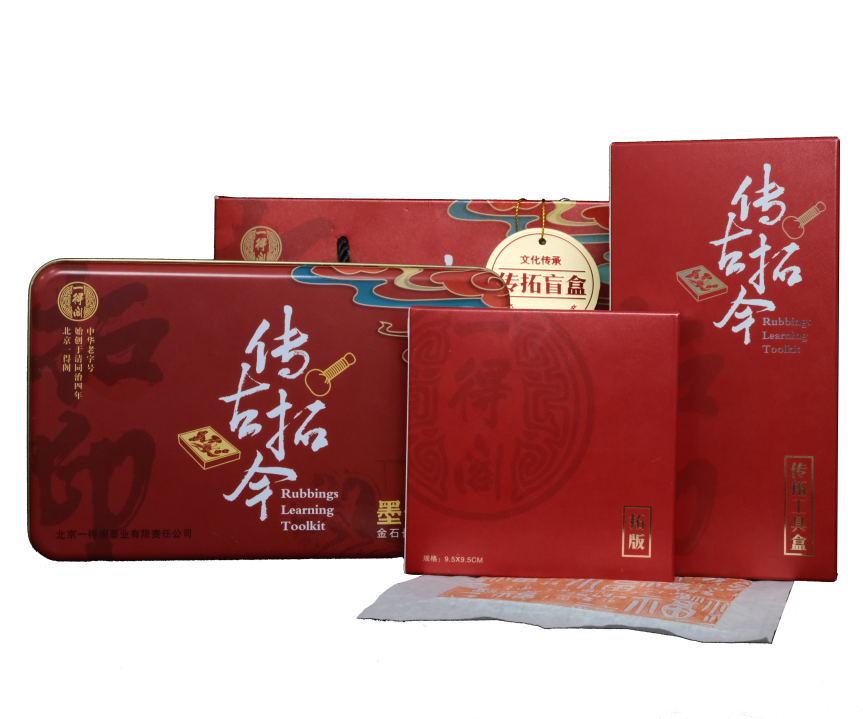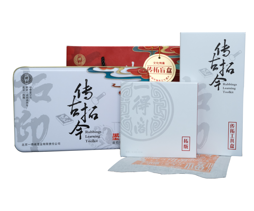 「傳古拓今」拓印套裝于2023年6月上市。拓印是中國最早的印刷術,亦是一得閣傳統(tǒng)“制墨八法”的重要一環(huán),將紙張置于石碑拓版之上,再以一得閣朱墨施力生成祥瑞圖紋,觀之色澤可判斷墨之好壞。套裝內含拓印所需的全部用品,其中拓版特別采用盲盒設計,共有十余種寓意豐富的祥瑞圖紋,生動展現(xiàn)了中華傳統(tǒng)文化的淵博精深和獨特魅力。