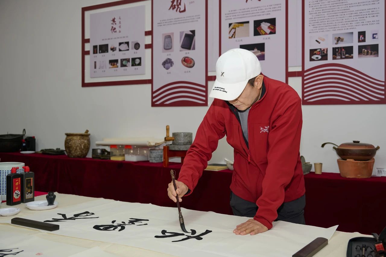 試墨會(huì)結(jié)束后,北京一得閣墨業(yè)有限責(zé)任公司總經(jīng)理白冰帶領(lǐng)大家參觀了一得閣百年歷史展覽、一得閣全品類陳列室。李苦禪先生使用一得閣中華墨汁創(chuàng)作的的《遠(yuǎn)瞻圖》,民國(guó)時(shí)期留存下來(lái)的一得閣墨塊,瓶身倒立也不流的百年蓖麻油,一得閣與恭王府、中國(guó)郵政、央視總臺(tái)的聯(lián)名文創(chuàng)令人目不暇接。