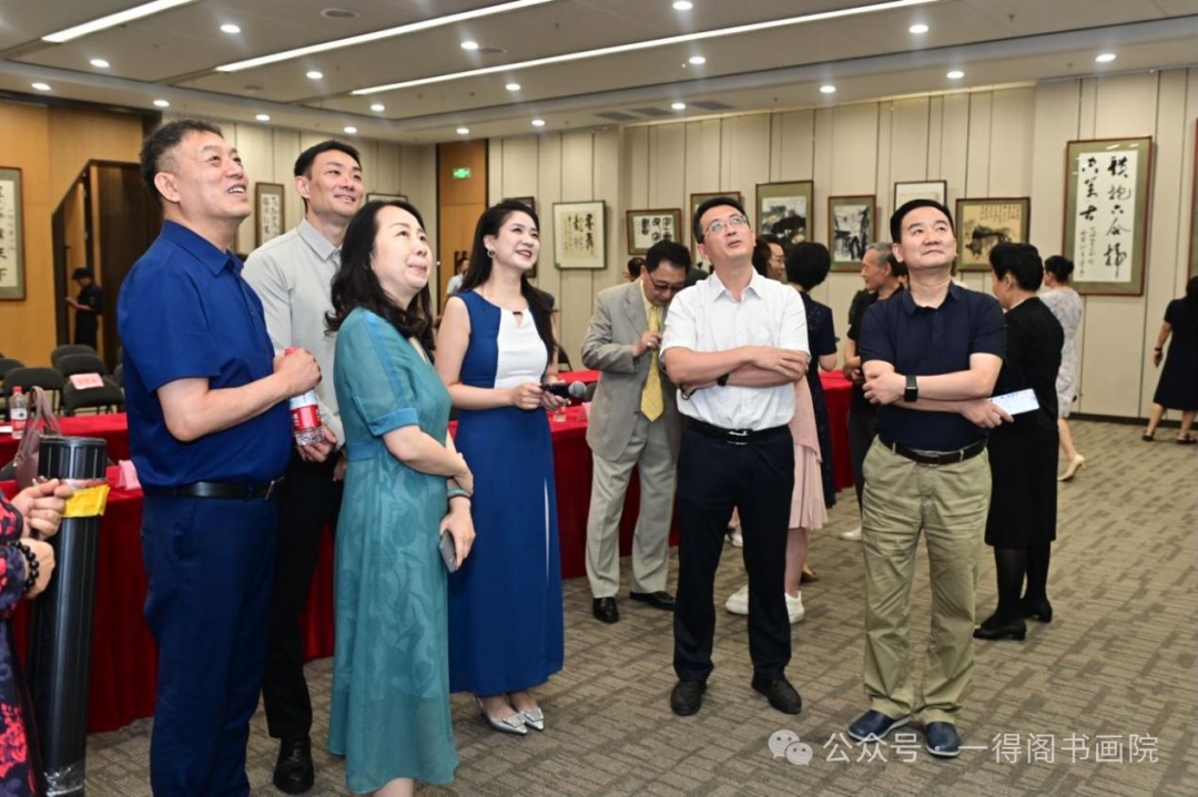 濟南市歷下區(qū)委宣傳部部長孫華,北美藝術(shù)家協(xié)會會長、飛熊國際藝術(shù)集團總裁沈震敏,濟南市歷下區(qū)委宣傳部副部長畢偉東,歷下區(qū)統(tǒng)戰(zhàn)部副部長、臺辦主任、僑辦主任王輝勇,濟南市歷下區(qū)文聯(lián)黨組書記高振華,濟南市歷下區(qū)歸國華僑聯(lián)合會主席于梅,北美藝術(shù)家協(xié)會副會長王世永,濟南市歷下區(qū)美術(shù)館館長張彩霞,濟南市歷下區(qū)美術(shù)館副館長馬莉,山東一得閣美術(shù)館館長魯真子,濟南同際產(chǎn)業(yè)園管理有限公司總經(jīng)理蔣亞菲,北美書畫研究院葉黎玲,北美書畫研究院吳蓉,九三學(xué)社社員、山東美術(shù)館館聘藝術(shù)家、齊魯藝術(shù)館副館長侯博瀚,原山東省發(fā)展投資公司董事長、中國工藝美術(shù)學(xué)會書畫委員會會員嵇境科,江蘇省書法家協(xié)會會員、中國書畫研究會常務(wù)理事王振山,山東省書協(xié)會員、山東文化市場發(fā)展協(xié)會藝術(shù)顧問尹豐文等百余人參加展覽開幕式。