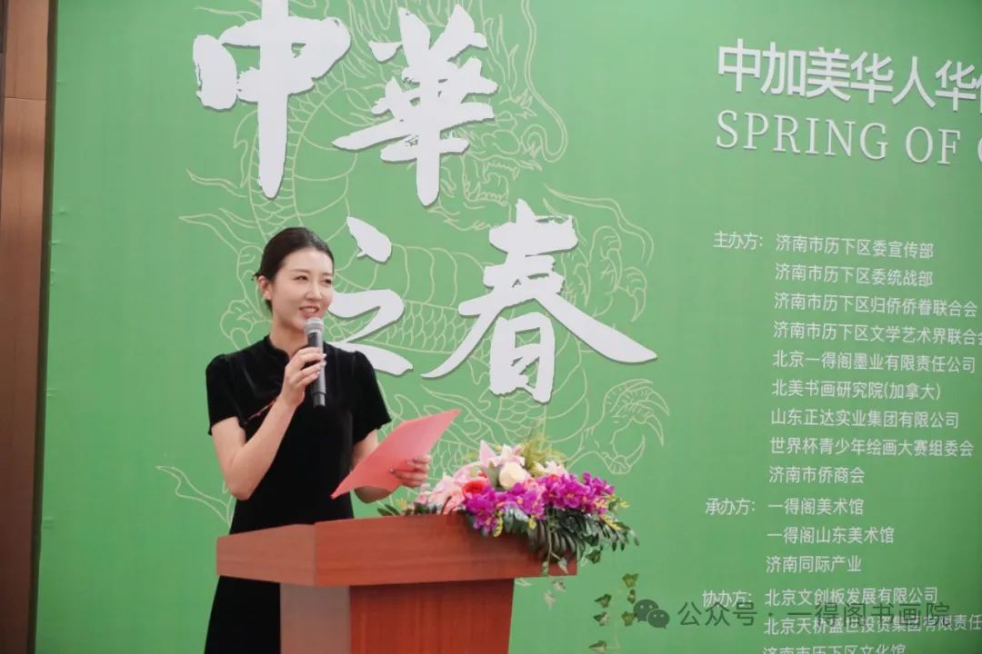 山東一得閣美術(shù)館館長魯真子致辭,本次書畫展的舉辦,不僅將加強中加美三地華人華僑藝術(shù)家之間的交流與合作,推動中華文化的傳承與發(fā)展,更將成為我們美術(shù)館發(fā)展歷程中的一次重要里程碑。我們將繼續(xù)努力,為推廣藝術(shù)文化、豐富人民群眾的精神生活貢獻更多的力量。