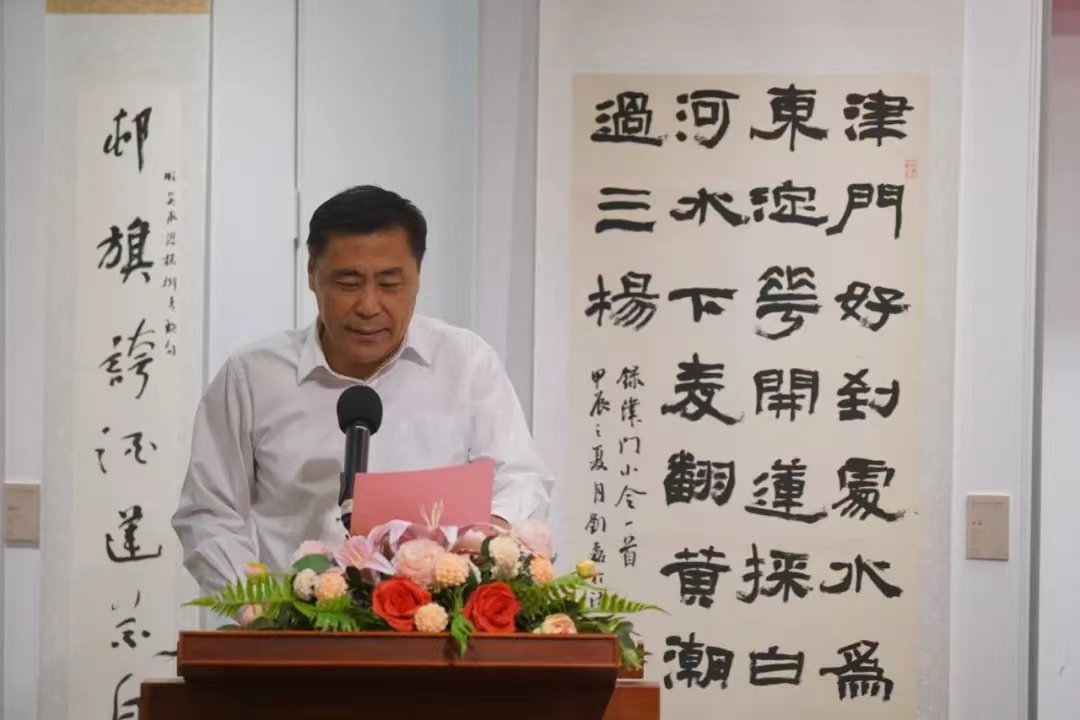 冷萬(wàn)里副主席對(duì)此次展覽作品的主題以及專業(yè)性給予高度評(píng)價(jià),并為與京津冀三地的書(shū)法家與書(shū)法愛(ài)好者因書(shū)法相聚一得閣美術(shù)館共同為祖國(guó)慶生表示榮幸,對(duì)西城區(qū)文化館為此次展覽辛苦籌備與付出的工作人員表示感謝,最后祝賀展覽成功開(kāi)展。